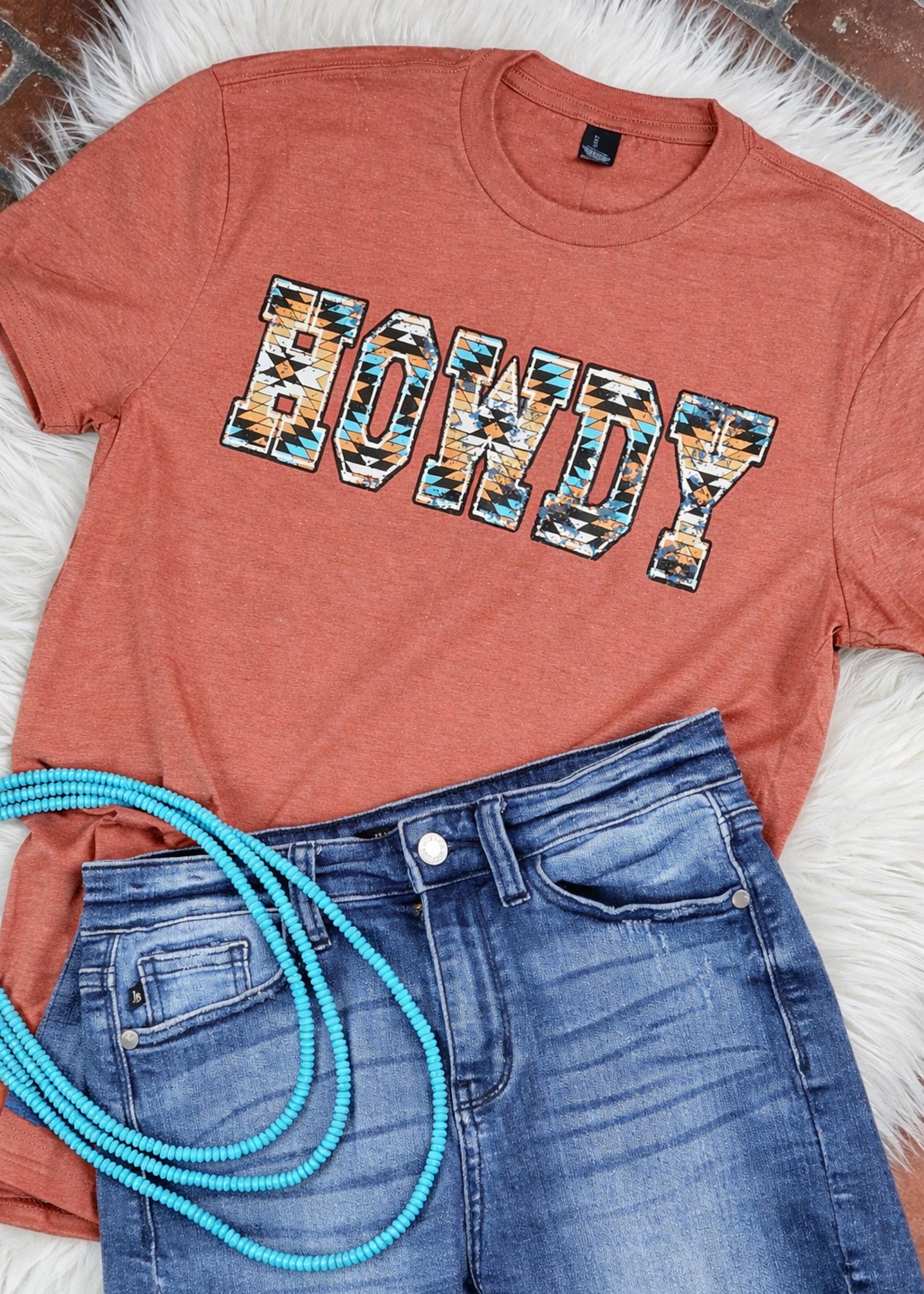 Heathered Clay Aztec HOWDY Short Sleeve Tee
