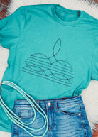 Indulge in the perfect blend of western vibes and summer time with our Teal Boot Stitch Short Sleeve Tee. Made for both comfort and style, this tee will have you feeling confident and ready for any adventure. Add it to your wardrobe today!