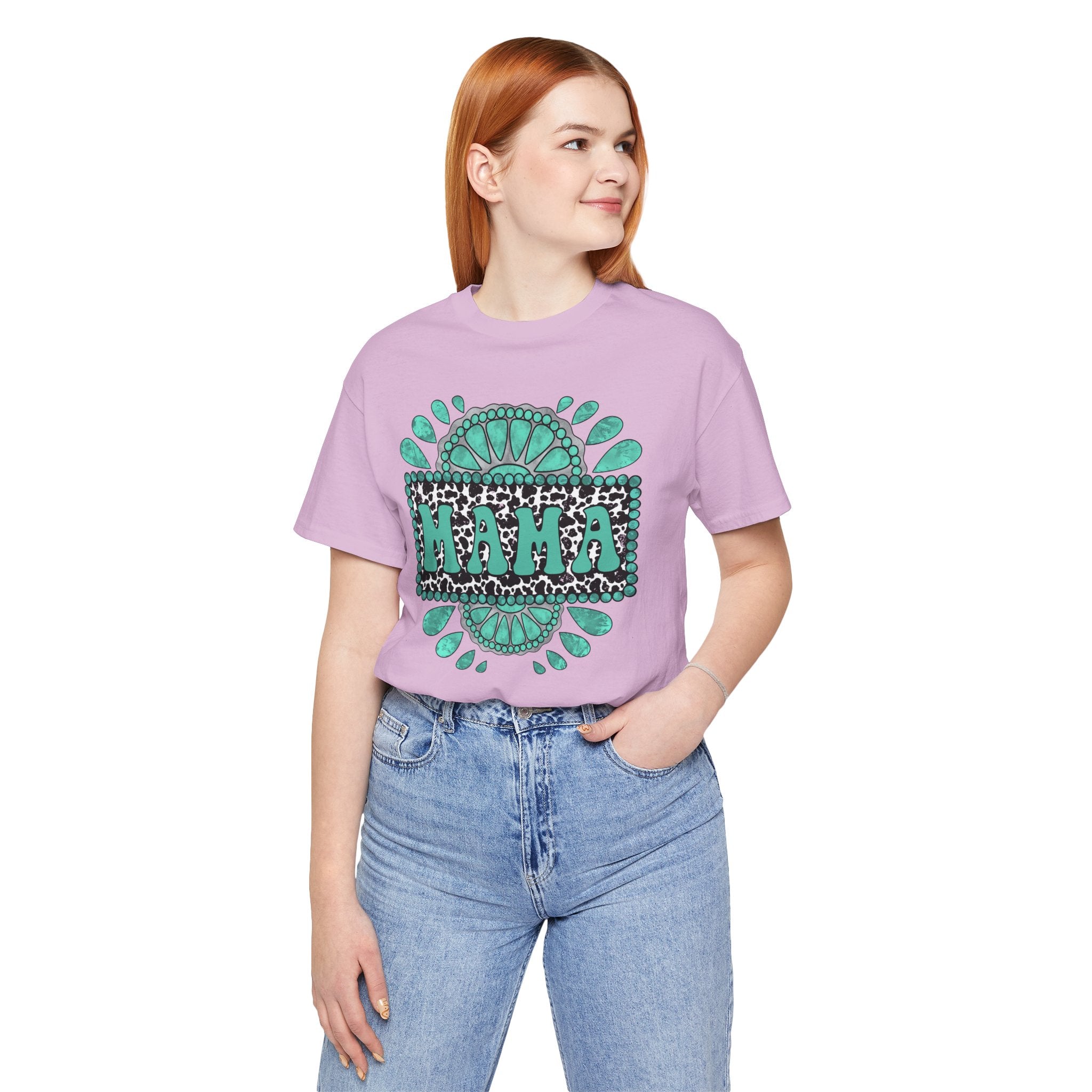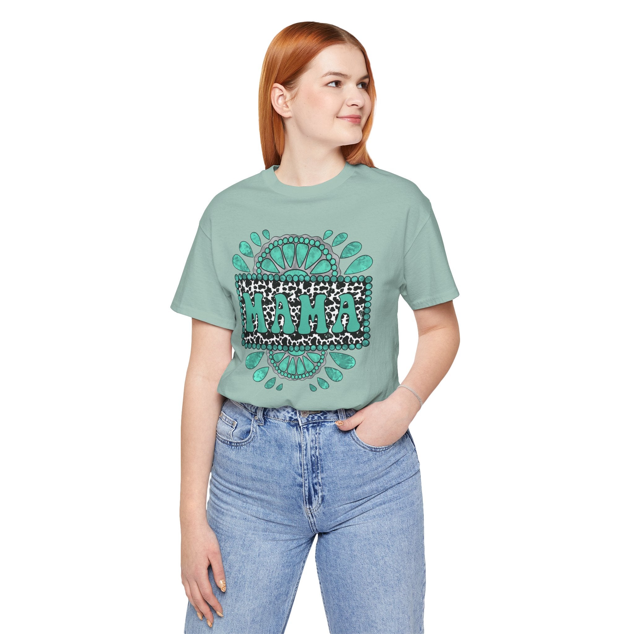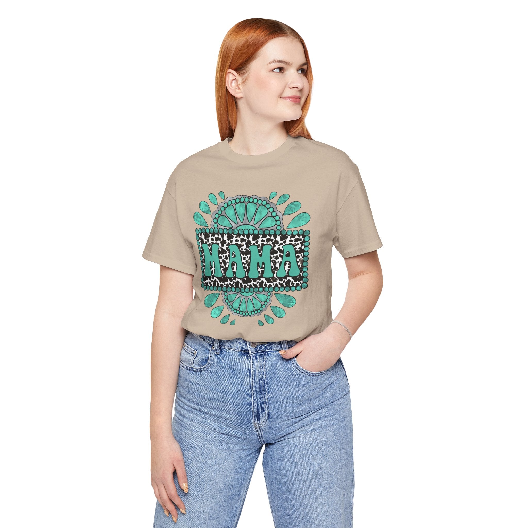 Celebrate your mom life with a touch of western charm in this Turquoise Western Mama Short Sleeve Graphic Tee. Designed with unisex sizing for a comfortable fit, this tee blends casual style and bold western vibes effortlessly. Perfect for busy moms who want to showcase their spirit while staying cozy and confident throughout the day.