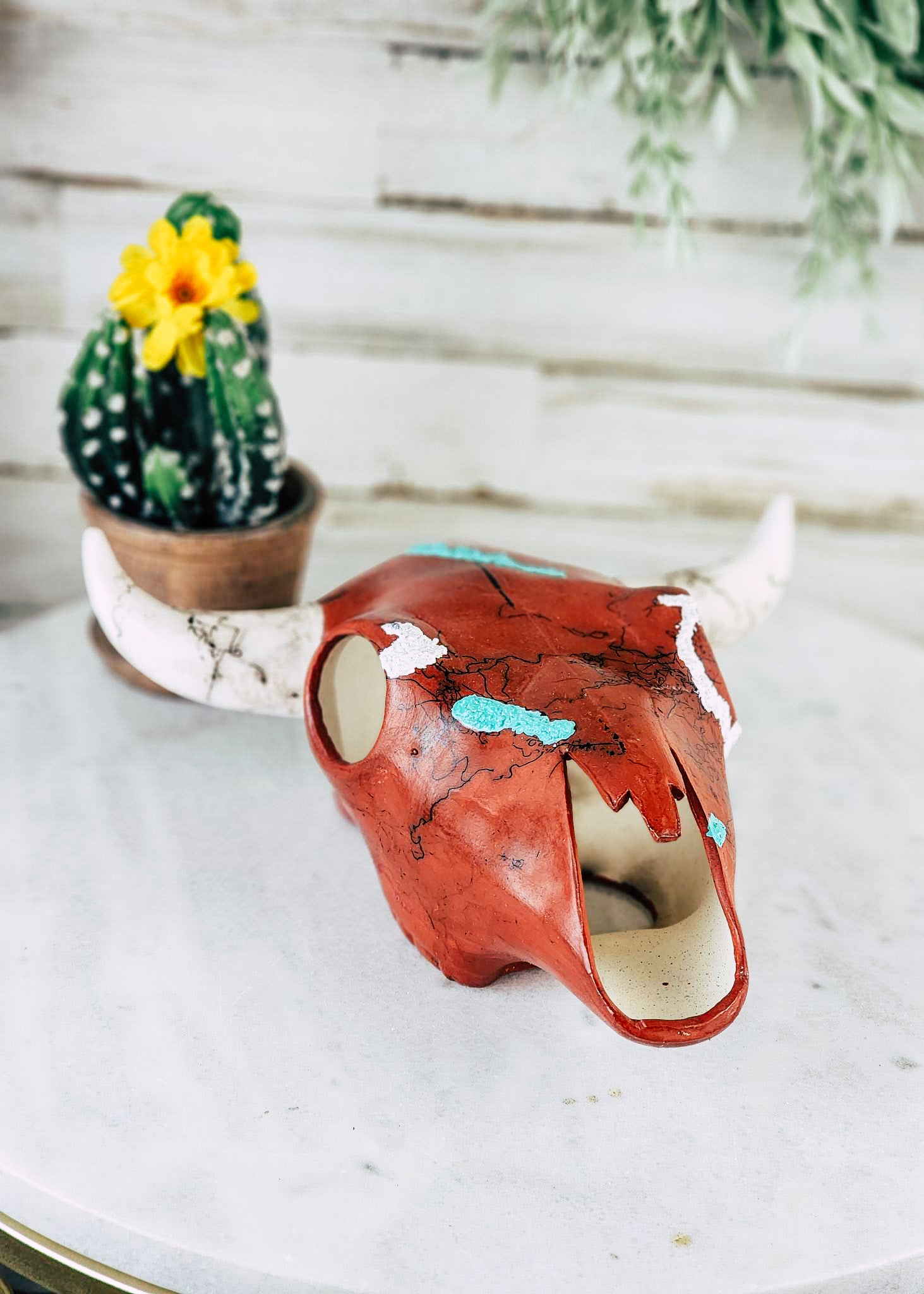 Horse Hair 9" Terracotta Skull Head