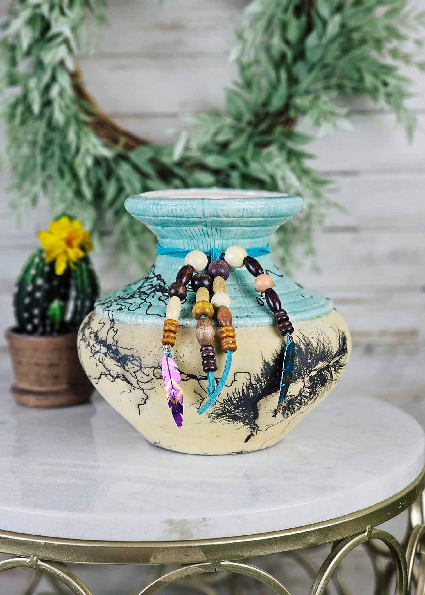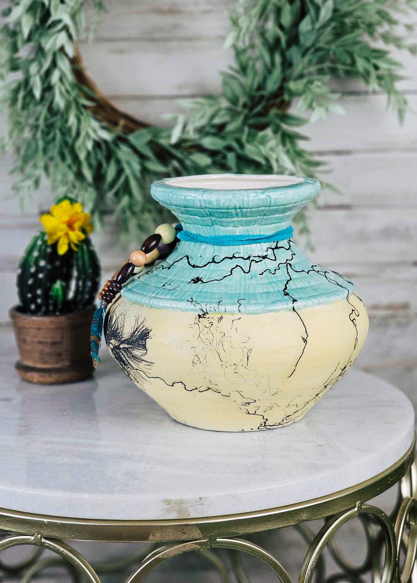 - Yellow & Turquoise Glazed Inside