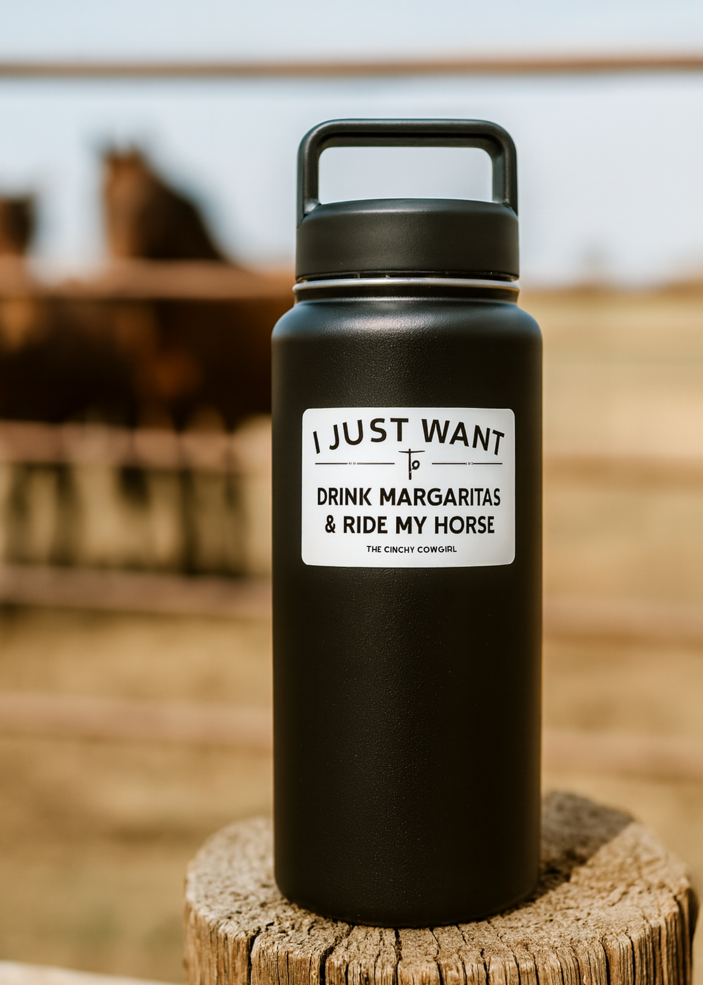 Show off your personality with the "I Just Want To Drink Margaritas & Ride My Horse" sticker—perfect for barn lovers who enjoy a good laugh and a great drink. Designed to withstand all weather conditions, this waterproof sticker sticks with you rain or shine, whether on your water bottle, tack box, or truck. Celebrate your love for horses and margaritas with a touch of humor that sticks around for every ride and sip.