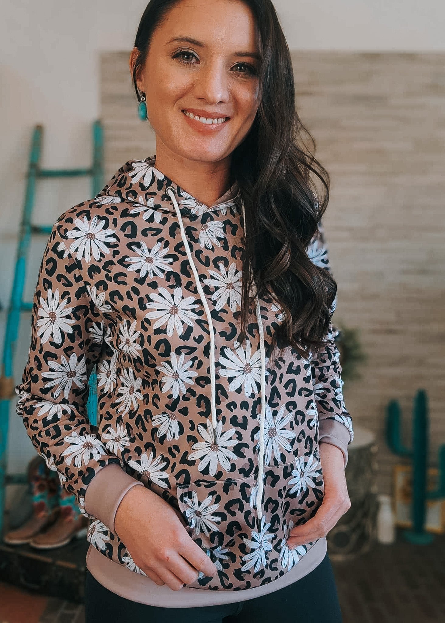Stay comfy in style with our versatile Leopard Daisy Hoodie! Perfect for any occasion, this hoodie will keep you comfortable while making a statement with its fierce leopard and daisy design. Embrace your wild side and upgrade your wardrobe with this must-have piece!