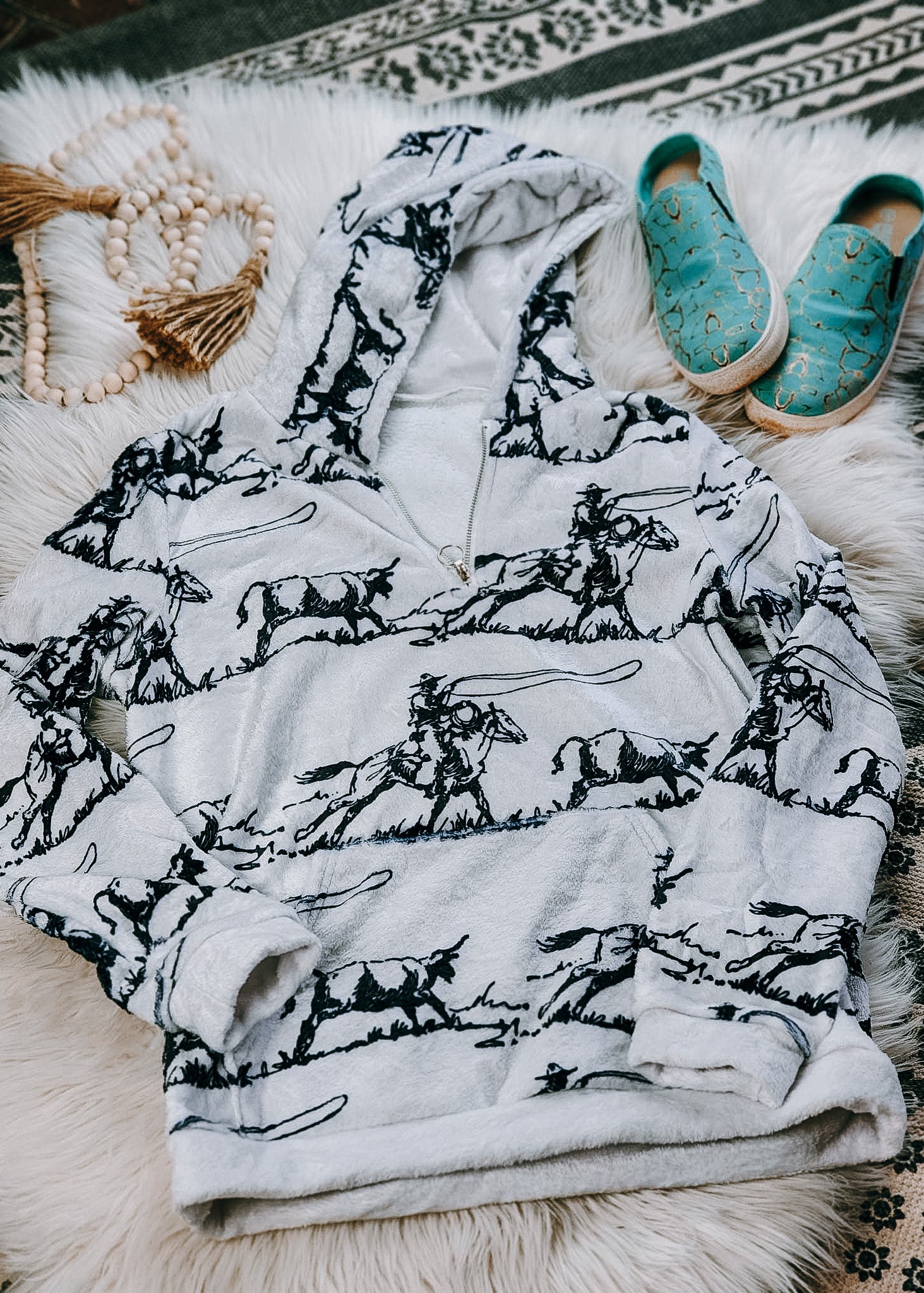 This western ranch-style hoodie is designed for comfort and function. The fleece fabric is super-soft and warm, making it perfect for those chilly days - you'll never want to take it off! Stay cozy, look cool, and live your best western life.