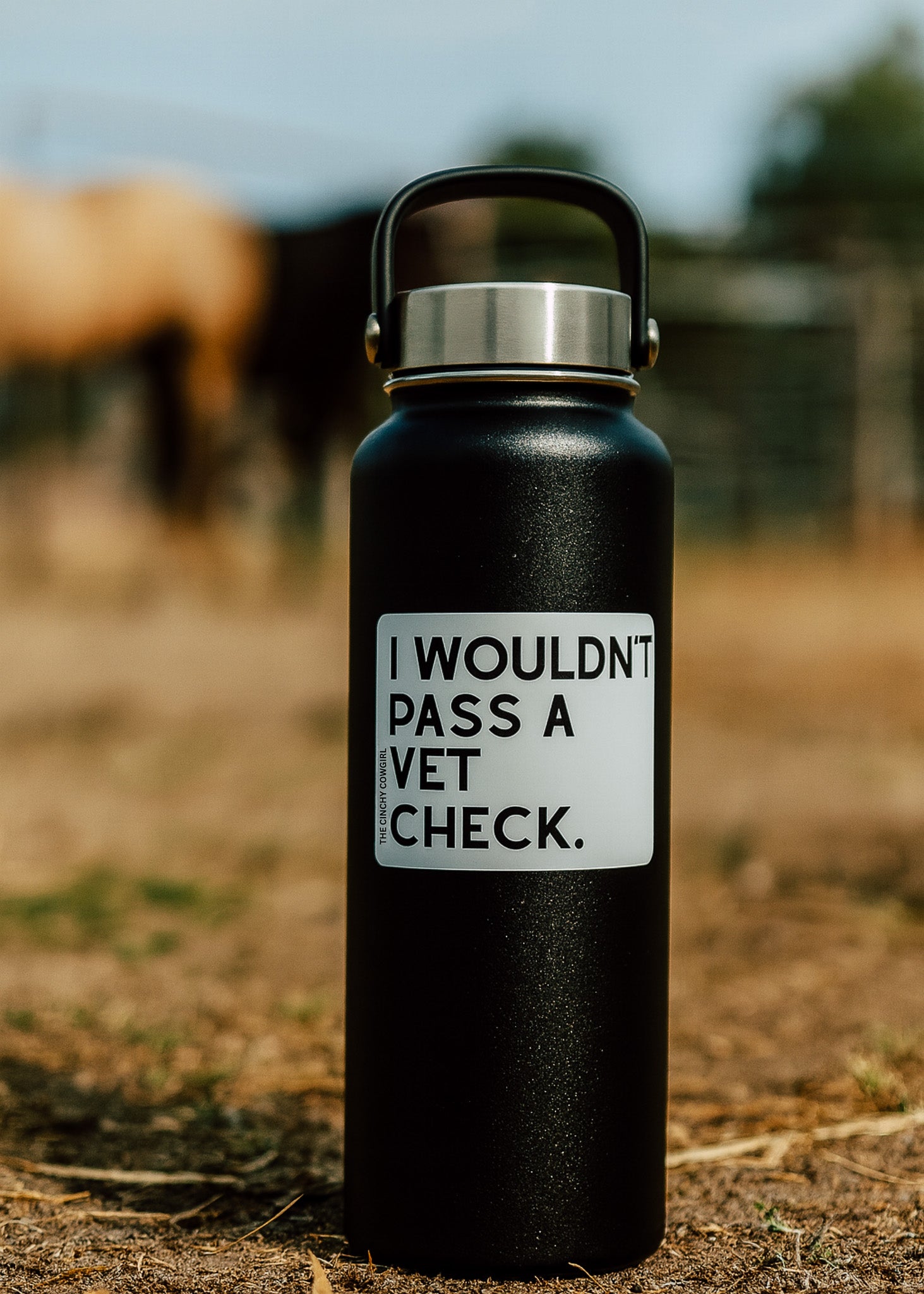 Show off your love for horses with the "I Wouldn't Pass A Vet Check" sticker. Waterproof and weatherproof, it easily adheres to tumblers, laptops, cars, and more, keeping your gear protected and uniquely yours. Perfect for any horse owner with a sense of humor, this durable sticker adds personality wherever you choose to display it.